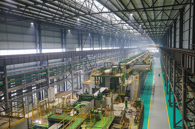 河北兆建金屬制品有限公司始建于2010年11月,注冊(cè)資金1億元人民幣,占地面積70萬平方米,總投資為25.9億元,年生產(chǎn)能力320萬噸(其中:軋硬產(chǎn)品120萬噸、鍍鋅產(chǎn)品120萬噸,彩涂產(chǎn)品80萬噸)。專業(yè)生產(chǎn)冷軋板、鍍鋅板、鍍鋁鋅板、印花板、冷覆膜板、熱覆膜板、建筑彩涂板、家電彩涂板。選用設(shè)備力求高起點(diǎn)、高水平和高質(zhì)量,打造國際一流水平的設(shè)備生產(chǎn)線,具備生產(chǎn)周期短、效率高、產(chǎn)品精度高、質(zhì)量好和能耗等優(yōu)點(diǎn)。